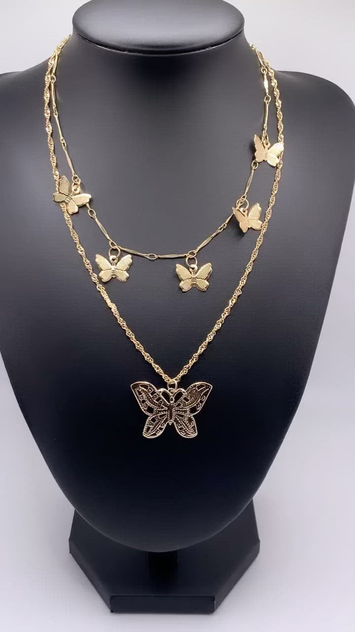 Fashion butterfly double layer multiple butterfly pendant necklace.