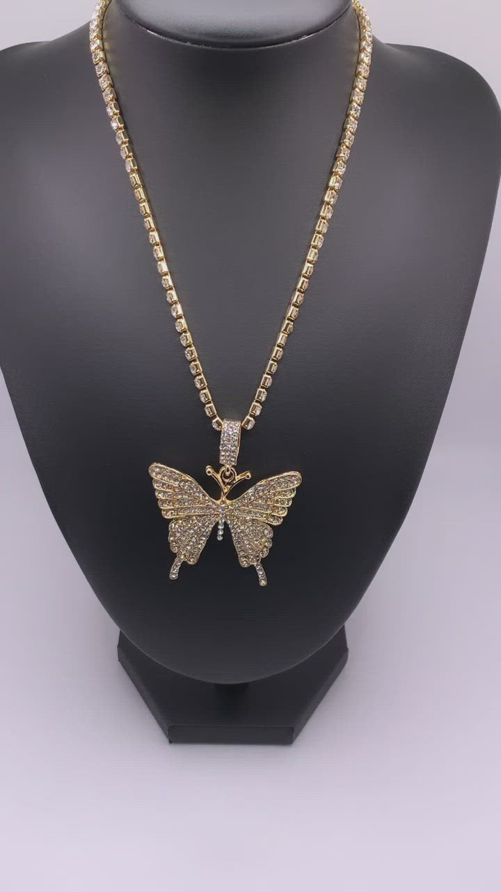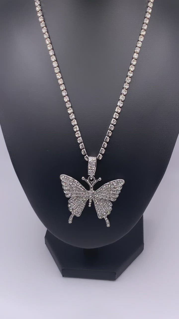 Fashion rhinestone bling out big butterfly pendant tennis chain.