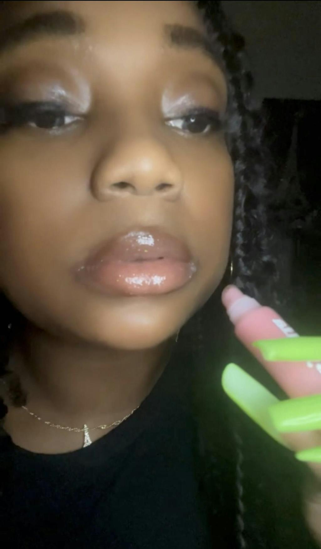 Baby-pink, non-sticky gloss with just a whisper of shimmer. Its lightweight, moisturizing formula glides on smoothly, leaving behind a flattering glossy finish without any tackiness.