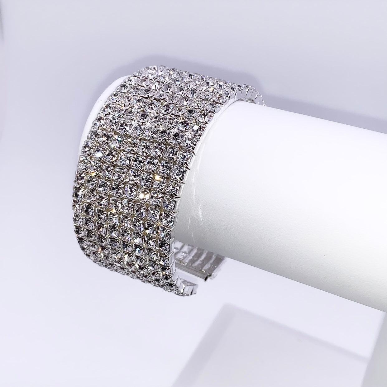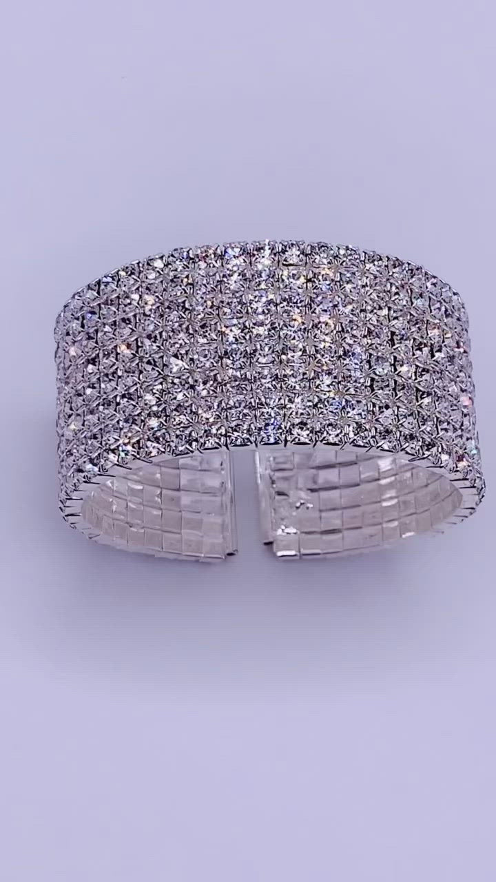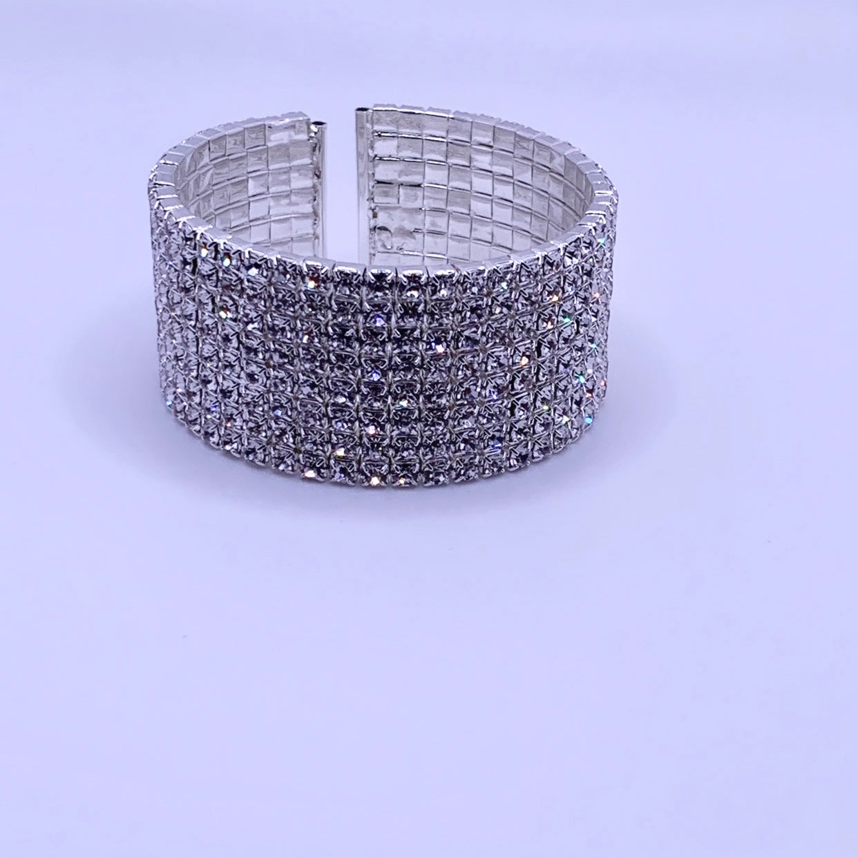 Fashion rhinestone cuff silver plated bangle bracelet.